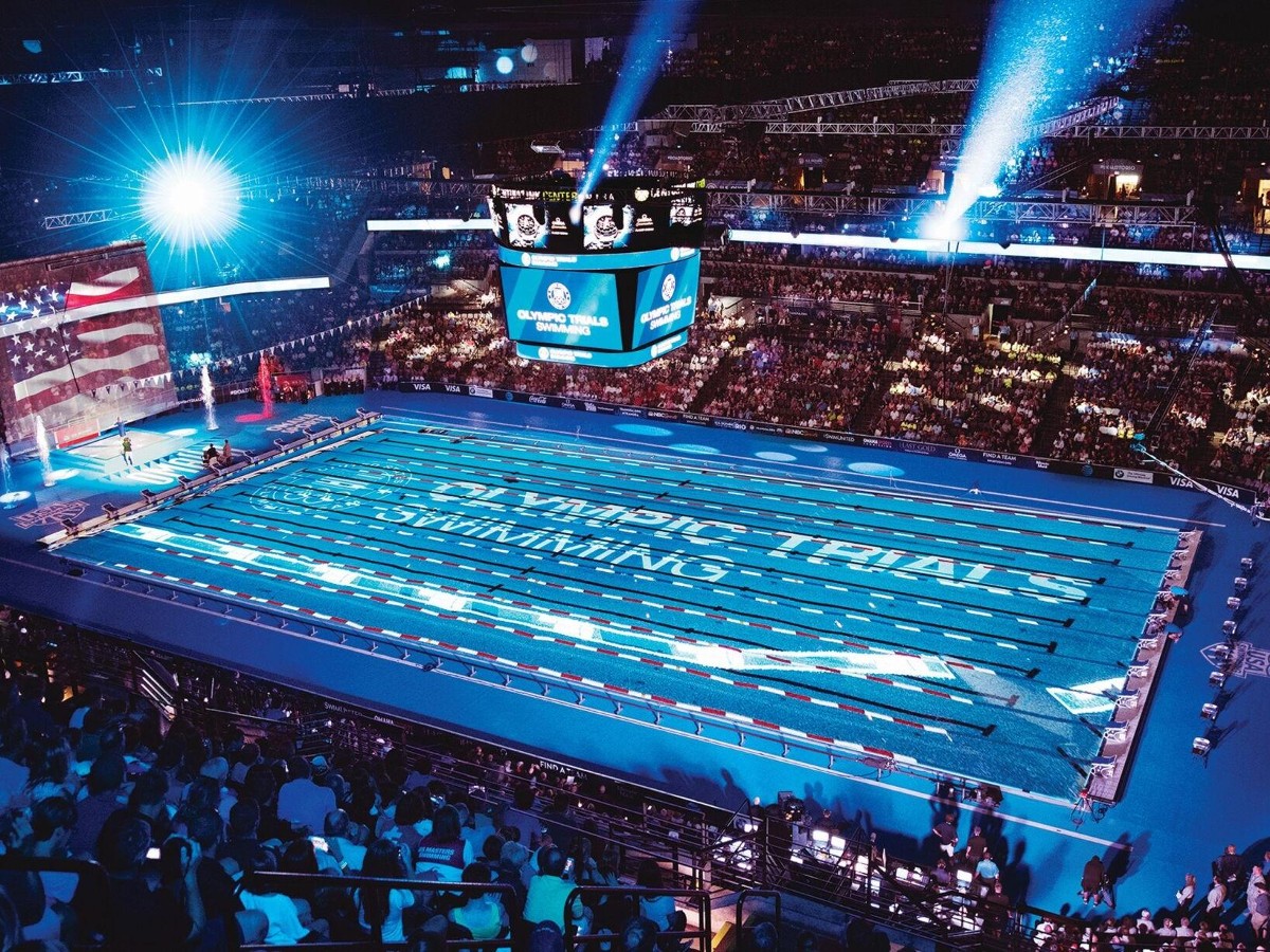 DYK that the Olympic Trials pool is built inside a stadium? Check out this awesome timelapse of the 2021 Olympic Trials pool being put together inside the CHI Health Center Omaha. After the success of selling out 10,000 tickets to the 2004 Long Beach trials, USA Swimming has been using stadiums to allow for bigger crowds. According to SwimSwam, attendance nearly doubled for the 2008 trials and in 2016 the event sold 200,000 tickets! The criteria is pretty interesting for what stadiums are considered; take a peek at this article that explains it all and which stadiums are being considered for the 2024 trials.